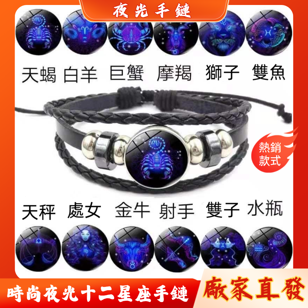 11分鐘前十二星座手鍊情侶皮手鍊多層編織時尚,夜光十二星座手環飾品小清新 - 【夜光十二星座手鍊 六入組】